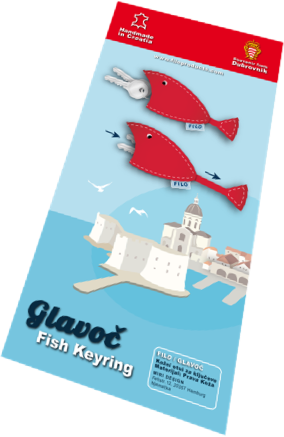 Pakiranje sadrži sliku ribara FILO koji ponosno drži svoj “ulov”: privjesak GLAVOČ! Na pozadini je kratki opis i slika grada Dubrovnika.